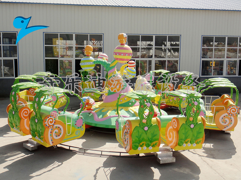 游乐设备,它的整个造型设计非常特别,在中间的部位是一棵充满卡通设计的糖果树,在四处延伸的树枝上站立着可爱的猫头鹰,细节化的点缀更是增添了不少的童趣。与传统意义上的骏马座舱不同,它的座舱四周被藤蔓围绕,彩色棒棒糖图案的不规则分布让小朋友们一眼就爱上。也正是如此该款设备适合摆放在公园、广场、社区等小朋友较多的场所。